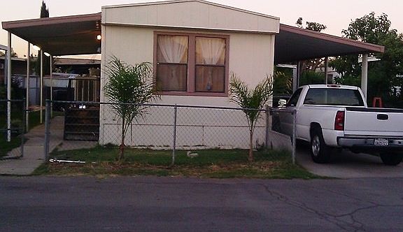 Granite countertops in kitchen and bathroom tile thru out home carport for 4 cars storage shed small gated yard pool in community low space rent All age Park. Owner Financing $15,000 or more down
