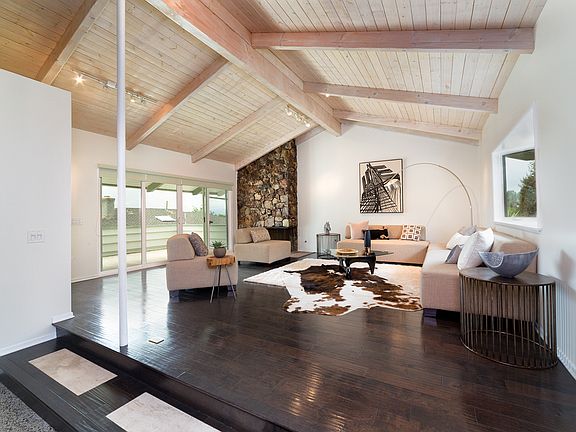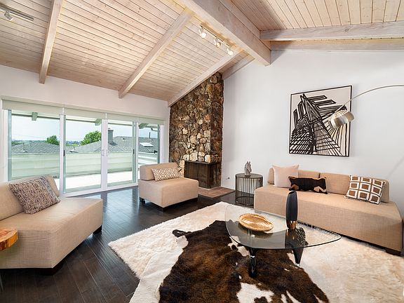 With personality & vision, this Mid-Century home is yours to turn into a real "Knock Out"! NOT a Flip or typical track home, This unique home provides space, style, versatility and an AMAZING Larger Corner LOT! UPSTAIRS: features an Entertainer's kitchen, space enough to make all your dreams come true! Open dining room and Regal Step up living room with vaulted ceilings, stone fireplace, rich wood floors and double glass doors lead out to patio with treetop & city views. 3 bedrooms + 2 bathrooms, including ideal Master suite with large bathroom + walk in closet. DOWNSTAIRS features: Family room with fireplace, kitchenette, 2 full bathrooms and second laundry area + bedroom and additional "craft room/office". Downstairs could be a separate living unit with direct entry from the backyard. Also perfect to Enjoy family time, extended stay guests or work space. Come visit this home, feel the space, peace, tranquility and potential to make this gem Your crowning jewel! Opportunity Now