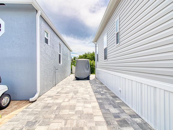 Right across from the beach on Hutchinson Island, this brand-new 2025 build 2-bedroom, 2-bathroom manufactured home is located in the vibrant gated community of Venture III. Along with a rare additional 1,751 sq ft lot that functions as private yard space, this property is part of the only strip in the entire community that offers such a feature. Inside, you'll find premium upgrades including dual-pane thermal windows, a full smart security system with ADT monitoring and remote access, and a suite of cutting-edge White Samsung Bespoke appliancesfrom a refrigerator with AI Family Hub" to an induction range with smart oven camera, stylish microwave, dishwasher, and washer/dryer combo. These thoughtful additions bring modern convenience, security, and energy efficiency to your island retreat. Additional home upgrades include rain gutters, WiFi-enabled ceiling fans with remotes, California closets in both rooms, and outside security cameras with Google Home app access.