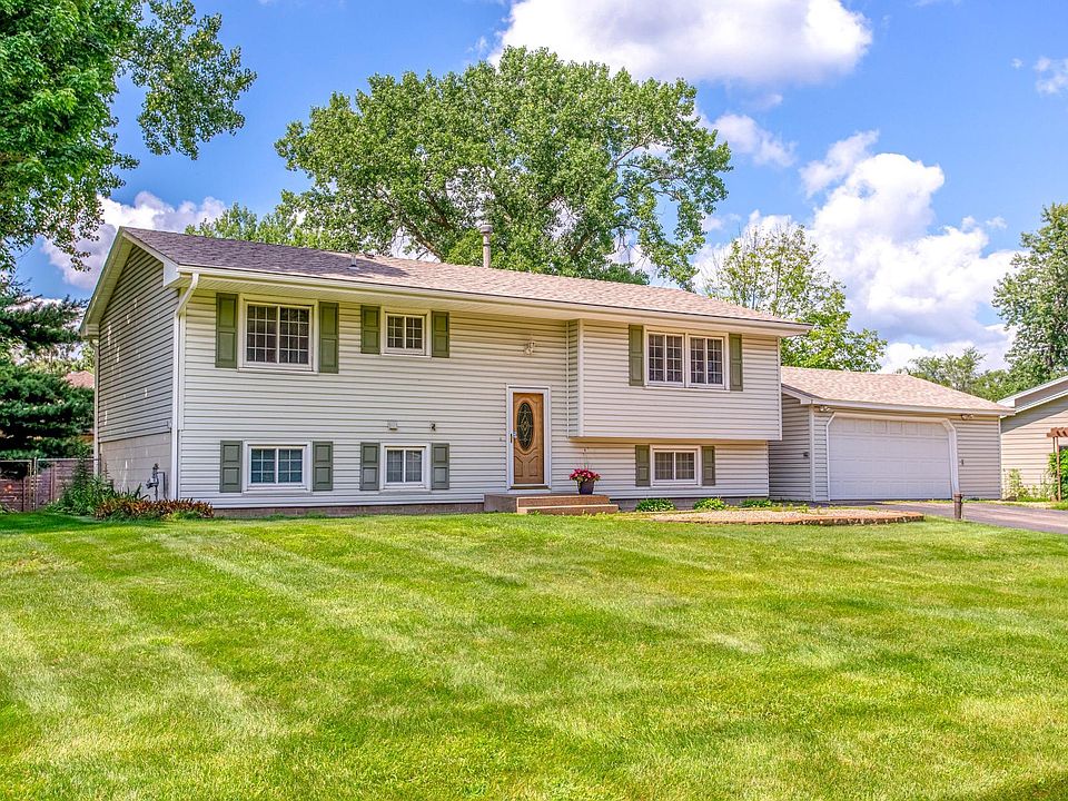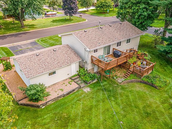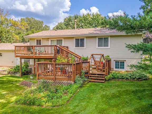 Nestled on the corner of a quiet cul-de-sac, this split-entry gem offers the perfect balance of spacious living and indoor-outdoor enjoyment. The private, fenced-in backyard is canopied by mature trees, filled with gardens and flowering plants, and features a multi-tier deck—ideal for morning coffee, grilling, or hosting gatherings. Step inside to an expansive living room that flows seamlessly into the well-appointed kitchen, complete with a gas range, abundant cabinetry, and an adjoining dining area with sliding door access to the upper deck. Just off the main living and dining areas, a versatile den with pocket-door entry highlights a built-in hutch with glass display doors—perfect as a formal dining area, home office, hobby space, or a cozy reading nook. Two generously sized bedrooms on the main level share a full bath with extended vanity, tile flooring, and a spa-like jetted tub/shower combination. The finished walkout lower level expands the home’s flexibility, featuring a spacious family room anchored by a gas fireplace and a large built-in safe, an updated bath with a new walk-in shower and linen shelving, and a large bedroom with a spacious walk-in closet. The laundry room, complete with sink, washer, and electric dryer, connects to an extended storage room which offers convenient access to home utility systems and the backyard. Additional highlights include an oversized 2.5-car garage with ample storage space or a workshop, thoughtful landscaping with lilies, hostas, and a vibrant orange trumpet vine that blooms in late summer, and plenty of room both inside and out to relax, entertain, and grow. For $35 a year, homeowners can join the voluntary “Riverside Association” which comes with exclusive access to a private beach and picnic area on the popular 6 mile Mississippi River recreational waterway, a private boat launch, and access to 2000’ of Mississippi shoreline. For an additional fee you can reserve a boat slip (subject to availability). This home is a true gem you won’t want to miss!