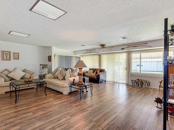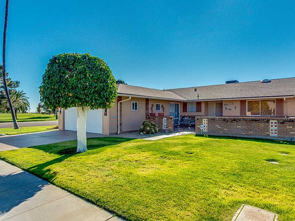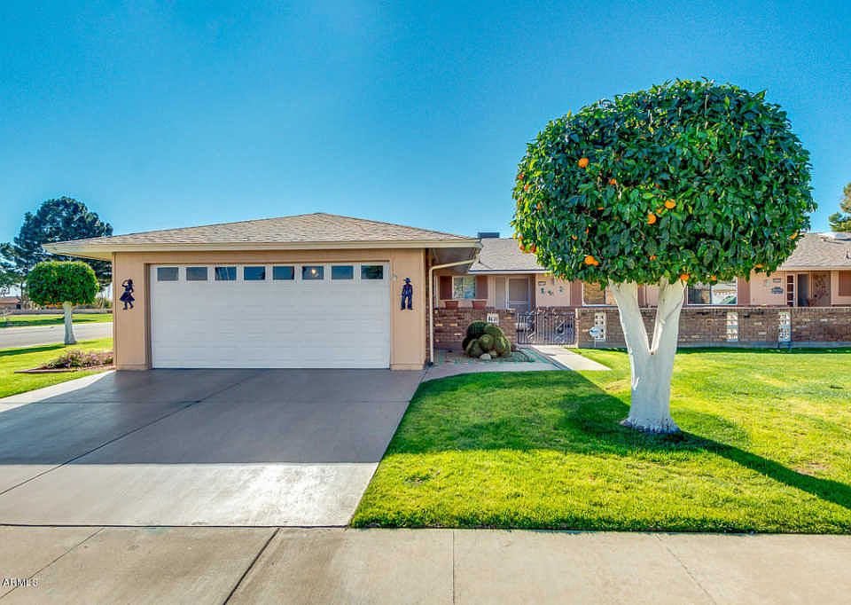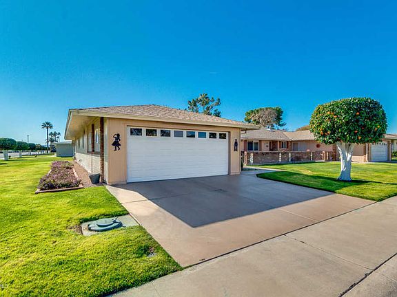 Come see this charming property with Sun City Country Club/Golf Course right across the street, in a fantastic adult community! This corner lot home has lush landscaping, 2 car garage, and gated front porch. Step inside this beauty to discover an amazing open great room with large windows that allows tons of natural light. Lovely galley kitchen includes nice appliances, with double oven, ample cabinets, breakfast bar, and breakfast room. Master suite has plush carpet, closet, and private bath. Backyard offers a cozy covered patio perfect for relaxing while enjoying a pleasant evening. You don't wanna miss on this wonderful opportunity. Sewer line repaired, and A/C unit replaced last year. Call to schedule a showing today!