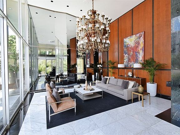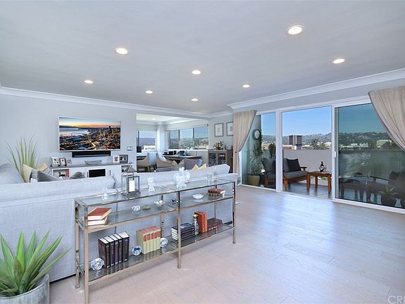 A totally custom-built home meticulously done throughout. 2 BR, 2 Ba, private corner location, bathed in sunlight and cross ventilation breezes - VIEWS from everywhere! Large open floor plan with alcove area for an office or sitting area and floor to ceiling custom-built bookshelves. Features include, wood flooring, recessed lighting, white crown moldings, custom roll-down shades. New double-paned windows and sliding door leading to a large, tiled, north-facing patio, with panoramic mountain views for a serene outdoor experience. Custom designed kitchen has great storage appointed with top of the line appliances. All closets have been designed for maximum usage. Master BR has walk in plus 2 large closets with custom shelving and bath with double sinks and spa like shower with a bench. Additional hall bath with shower and wall of closets for storage in the hallway. Building amenities include pool, fitness gym, sauna, banquet room, concierge, full-service valet, guest parking, with 24 hour-controlled access. HOA pays water and cable. Easy walk to UCLA and all Westwood locations, movie theaters, Trader Joe's and Peet's. Five minutes to Beverly Hills, Brentwood and 10 minutes to Santa Monica.