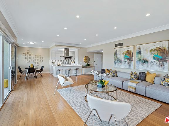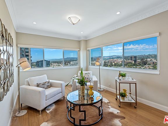 2 bedroom 2 bath + DEN corner unit in the full service Crown Towers with incredible views of the city, mountains andocean. This completely updated unit features bamboo floors, recessed lighting, a large living room that leads to theden and an oversized balcony with unobstructed sunset views, open kitchen with breakfast bar, newer stainless steelappliances and service entry. Spacious master suite with large closets, luxurious master bath with large shower, doublesinks and loads of storage. Second bedroom with stunning views. The building features, 24/7 doorman and reception,valet parking, pool and outdoor lounge, fitness center with sauna and recreation room with kitchen. All convenientlysituated in Westwood, close to movies, places of worship, restaurants, Westwood Village, Century City and UCLA.