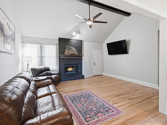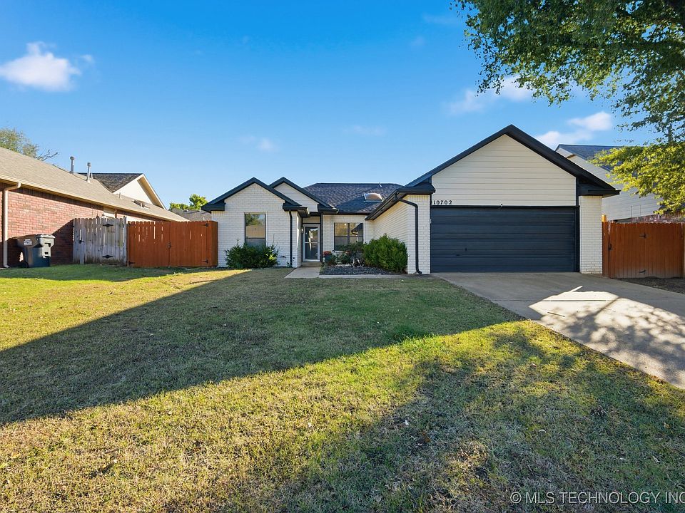 Don’t miss out on this wonderful opportunity to own a very well-maintained home in the Bixby school district. This 3-bed 2-full-bath home offers a modern style, bright living spaces, and thoughtful upgrades throughout. Gorgeous remodeled kitchen featuring white cabinetry, subway tile backsplash, stainless steel appliances, gas range, and granite countertops throughout. Open layout flows easily into the living and dining room spaces. Perfect for everyday living and entertaining. Separate washer and dryer space just off the kitchen near the garage entry. Spacious primary suite with vaulted ceilings and barn-style closet door. Updated primary bathroom offering dual sinks, modern lighting, and a refinished vanity accommodating additional storage. 1-year-old roof and fully fenced yard with gate access on each side. Well-kept neighborhood with easy access to Memorial shopping and dining.