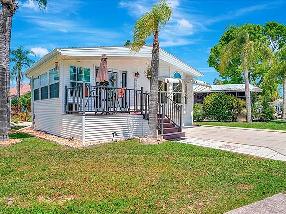 Welcome to your new oasis! This meticulously maintained 1999 manufactured home is a true gem. From the moment you step inside, you’ll be captivated by its charm and thoughtful upgrades. Key Features: 1 Bedroom, 1 Bathroom: Perfect for cozy living or as a peaceful retreat. Bright and Airy Living Room: The air-conditioned additional room doubles as a spacious living area, flooded with natural light. Modern Upgrades: The roof, AC and ductwork have all been recently replaced, ensuring worry-free living. Stylish Kitchen: Enjoy newer windows in the dining room and sleek white appliances, beautiful backsplash and lighting fixtures. Convenient Laundry: A full-sized washer and dryer are included—no trips to the laundromat! Plenty of storage in built in loft above washer/ dryer, closet and pantry. Artfully Furnished: This home comes complete with tasteful artwork, ready for you to move in and enjoy. Active Adult Community: Nestled within a gated 55+ community, this property offers the perfect blend of social activities and serene nature. Explore wooded walking paths, bike along scenic lakes and canals, or take a leisurely golf cart ride across charming bridges. Engage in friendly matches of tennis, pickleball, or shuffleboard. Or simply relax by the swimming pool and spa. The clubhouse, with its attached screen room, hosts community events and gatherings. Paddle boats, row boats, and catch-and-release fishing add to the community’s allure. Don’t miss the 18-hole mini-golf area—the perfect spot for friendly competition! Your Own Slice of Paradise: Each small circle neighborhood boasts its own community center, complete with screened rooms for socializing. Full bath facilities and laundry amenities make life convenient. Storage options are available for RVs, cars, and more. The affordable HOA fee covers water, cable TV, trash, and lawn care—just pay for electricity! Best of all, you own the land—no leases here! Don’t miss out on this incredible opportunity to live the active adult lifestyle you’ve been dreaming of.