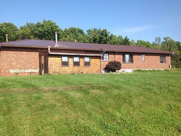 Enjoy country life in a solid BRICK RANCH on 5 acres! Estate offers 3 bedroom sprawling custom built home! Family room, 3 season room, gas fireplace, 2 wbstoves, hardwood floors, 3 garages, huge kitchen, appliances, and more! Lovely gardens, unique yard creations! Ready to become your cherished retreat!