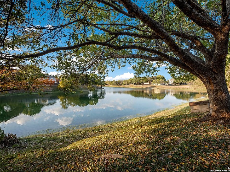 Discover your lakeside retreat in the peaceful Towne Lake community. This beautiful home backs up to gorgeous water views of the 3 acre lake and features bright, open living spaces with an effortless entertainer's flow on the first floor. The large eat-in kitchen opens to the dining area, and the living room includes a cozy fireplace, making hosting all the more enjoyable. Upstairs, you'll find the expansive primary bedroom with a generous ensuite bath featuring a double vanity, glass-enclosed shower, and soaking tub. Two additional bedrooms and a full bath offer flexibility for family, guests, or a private home office. Enjoy serene lake living just minutes from Wurzbach Parkway and less than 15 minutes from the San Antonio International Airport.