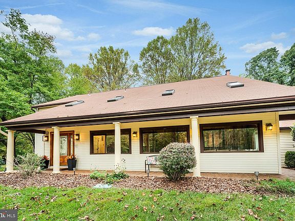 Set on 5.21 private acres in the coveted Woodsfield community, this 6000 SF custom residence combines timeless architecture with modern comfort in a secluded natural setting. The property features a rare blend of open, manicured lawns for recreation and entertaining, bordered by wooded acreage that ensures privacy and tranquility—yet all just minutes to DC, Tysons, Reston, and Leesburg. A stately brick pathway leads to the front entry - the home’s dramatic MCM-inspired 40-foot sunroom with vaulted tongue-and-groove ceilings, exposed beams, skylights, and terracotta floors. Bathed in natural light, this space is perfect for your morning coffee or evening cocktails, and hosting seasonal gatherings of family and friends - all while enjoying natures' serenity. For Multi-Generational convenience, this home boasts a custom Residential Elevator serving All Levels + a Main Level Bedroom Suite with Full Bath + Walk-in Closet. At the heart of the home, the Chef’s Kitchen showcases custom cherry cabinetry, Wolf & SubZero appliances, a massive island with prep sink, 6-burner gas range, two beverage drawers, and tall custom pantry cabinetry. A vaulted breakfast nook with built-in banquette seating adds warmth and functionality. Designed for both grand entertaining and intimate gatherings, interiors flow seamlessly with gleaming hardwood floors from parlor to dining room to family room, complemented by a cozy stone fireplace and refined finishes. An updated powder room and expansive laundry/mudroom are also on this Main Level. Originally designed as a five-bedroom home, the property has been reimagined with an emphasis on luxury and lifestyle. On the Upper Level, the primary suite features a boutique-style dressing room with illuminated, floor-to-ceiling maple cabinetry, custom shelving, and a fashion trolley—elevating the space into a true sanctuary. The suite also includes a sitting room with a double-sided fireplace, a morning bar, and a spa bath with dual vanities, jetted tub, and large jetted shower. In addition, the upper level offers a very large secondary bedroom with ensuite bath, providing comfort and privacy for family or guests. The upper level loft area has been customized into an executive-style home office with a cherry wood built-in desk and floor-to-ceiling cabinetry—an ideal space for today’s remote work needs.