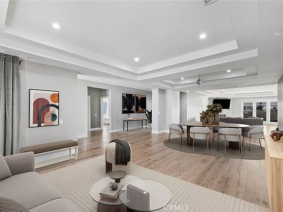 Welcome to 10702 Old River School Rd, an exceptional modern Spanish-style residence offering sophistication and comfort in the heart of Downey. Perfectly located across from Rio Hondo Golf Course, this home showcases timeless curb appeal with its arched entryways, tiled roof, and desert-inspired landscaping. Inside, the home opens into an expansive open-concept living and dining area with hardwood floors, recessed lighting, and dramatic tray ceilings that create a light-filled, airy atmosphere. The layout flows seamlessly into the gourmet kitchen, complete with custom cabinetry, sleek counters, and a large island ideal for both casual dining and entertaining. The grand master suite is a true retreat, featuring a spacious walk-in closet with built-in organizers and a spa-inspired bathroom. Relax in the freestanding soaking tub framed by picture windows or refresh in the oversized walk-in rainfall shower accented with designer tile. Dual vanities and elegant finishes complete the suite’s luxury feel. Two additional bedrooms are thoughtfully connected by a stylish Jack & Jill bathroom with double sinks and modern lighting. On the opposite side of the home, a private 4th bedroom with its own full bath offers the perfect setup for guests or multigenerational living. The home also includes a guest half bath for added convenience, a dedicated laundry room with built-in storage, and direct garage access for everyday functionality. A spacious family/media room with a custom stone fireplace wall adds to the home’s versatility and comfort. Outdoors, the generous backyard provides endless possibilities — perfect for entertaining, gardening, or simply enjoying the California sunshine. Nestled in a highly sought-after pocket of Downey, this home is just minutes from acclaimed schools like Rio Hondo Elementary, Griffiths Middle, and Warren High, local favorites including Porto’s Bakery, Tropicana Bakery & Cuban Café, and downtown Downey’s vibrant restaurant scene. For commuters, the property offers quick freeway access to the 5, 605, and 710, putting Los Angeles and Orange County within easy reach. Come by and see it for yourself!