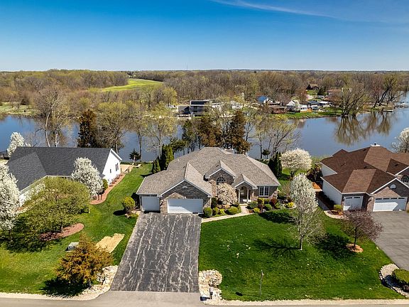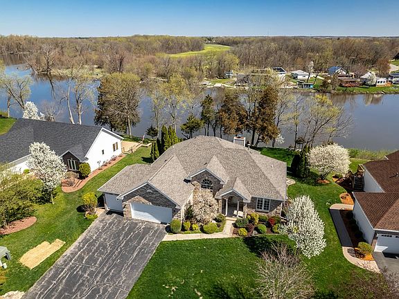 WELCOME TO THIS 1849 SQ FT 3 BEDROOM ONE OWNER HOME WITH BRICK FRONT THAT SITS MAJESTICALLY ON THE GORGEOUS ROCK RIVER WITH STAIRS TAKING YOU DOWN TO THE PEACEFUL SHORELINE. THIS HOME HAS A SPACIOUS ENTRY WAY WHICH GREETS YOU AND LEADS YOU INTO THE OPEN GREAT ROOM WITH 10’ CIELINGS, WINDOWS OVERLOOKING THE FANTASTIC VIEW OF THE RIVER AND GREEN SPACE AND COZY BRICK SURROUND FIREPLACE. THE EAT IN KITCHEN IS OPEN TO THE GREAT ROOM AND KEEPS EVERYONE TOGETHER AND ENGAGED. THERE IS A BREAKFAST BAR, HARD SURFACE COUNTERS, OAK CABINETS WITH PULL OUTS AND CROWN MOUDING.A BAY EAT IN AREA WITH SLIDING DOOR PROVIDES LOVELY VIEWS AND ACCESS TO THE LARGE DECK, PATIO AND BON FIRE AREA. THERE IS A SS 5 BURNER GAS RANGE, MICROWAVE, SS DISHWASHER AND REFRIGERATOR. THE FORMAL DININGROOM HAS A 12’ CEILING WITH A BEAUTIFUL OVERSIZED CELESTIAL WINDOW. THIS POPULAR SPLIT BEDROOM PLAN HAS A LARGE MASTER BEDROOM WITH SLIDING DOOR OUT TO THE DECK. THERE IS A PRIVATE ENSUITE WITH WHIRLPOOL TUB, DOUBLE VANITY SINK AND KARGE WALK IN CLOSET. THERE ARE 2 MORE FAMILY SIZE MAIN FLOOR BEDRROMS AND A FULL HALL BATH. THE CONVENIENT FIRST LOOR LAUNDRY HAS CABINETS AND A UTILITY SINK. THE ATTACHED 3.5 CAR GARAGE HAS PLENTY OF SPACE AND A UTILITY DOOR OUT TO THE BACK. THE LOWER LEVEL IS UNFINISHED, HAS GFA HEAT, CENTRAL AIR, WATER SOFTNER, NEW WATER HEATER, AND 100 AMP ELECTRICAL SERVICE. NEW ROOF 2022..THIS LOVELY ONE OWNER HOME HAS BEEN EXTREMELY WELL CARED FOR AND IT SHOWS.NICELY LANDSCAPED WITH LOTS OF PLANTINGS FOR PRIVACY AND BACK YARD ENJOYMENT. YOUR TIMING IS PERFECT! GET THE DECK FURNITURE OUT, HEAD DOWN TO THE RIVER ….f RELAX AND ENJOY OR CAST THAT LINE!