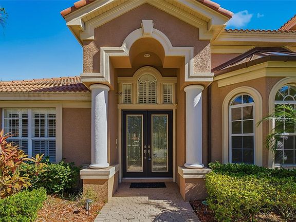 One or more photo(s) has been virtually staged. Welcome to Cielo at Champions Club, an exclusive gated enclave where luxury living meets everyday comfort and connection. Tucked away on a quiet cul-de-sac, this beautifully appointed 4-bedroom + office + loft + media room, 4-bath home offers 3,811 square feet of thoughtful design and inviting living spaces. Step inside to find coffered ceilings, plantation shutters throughout, and warm natural light flowing into both formal and casual areas. The heart of the home is the open-concept family room and kitchen, featuring a large center island, walk-in pantry, and a butler’s pantry leading directly to the dining room—perfect for entertaining. The kitchen is equipped with a rare natural gas stove and the home also features a gas water heater and a gas line already in place for a pool heater. The family room opens effortlessly to the outdoors through 4-panel pocketing glass sliders, creating a true indoor-outdoor flow ideal for both everyday living and hosting gatherings. Step onto the covered and screened lanai to enjoy the pool and spa with paver decking—an inviting space for warm summer evenings spent with friends and family. The first-floor layout includes a private office and well-planned bedroom spaces, while the second floor offers a flexible retreat with a loft, media room, bedroom, and full bath—perfect for guests, multi-generational living, or a dedicated entertainment suite. Additional highlights include a 3-car attached garage and a brick paver driveway, adding both beauty and practicality. Home has just undergone complete Interior Painting of Walls, Trim, Doors and Coffered Ceilings along with Carpeting in the bedrooms, loft and media room November 2025! Located within the sought-after Champions Club, residents enjoy a private clubhouse, fitness center, resort-style pool, tennis, and convenient access to Fox Hollow Golf Club with its signature golf and dining amenities. Just a short 30-minute drive to Tampa International (TPA) and St. Pete-Clearwater (PIE) airports, plus close proximity to a wide variety of restaurants, bars, shopping, parks, and world-class Gulf beaches. This home is as welcoming as it is impressive. Schedule your private tour today and experience this magnificent property firsthand.