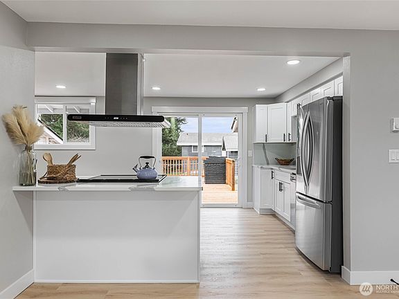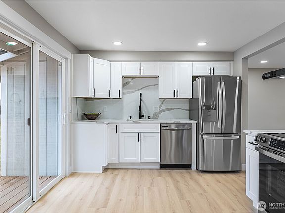 Located in a quiet cul-de-sac, this fully remodeled rambler features brand-new LVP flooring, modern tile in the bathrooms, and fresh interior and exterior paint. The kitchen boasts quartz countertops, soft-close white shaker cabinets, and new stainless steel appliances. Recessed lighting adds a modern touch throughout. Step outside to a large deck, perfect for entertaining, and enjoy the fully fenced backyard. Additional upgrades include a new roof, water heater, and sleek baseboard trim. The garage features a mounted ladder for easy attic storage access. Move-in ready!