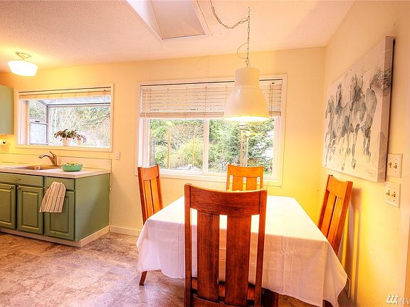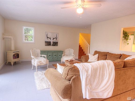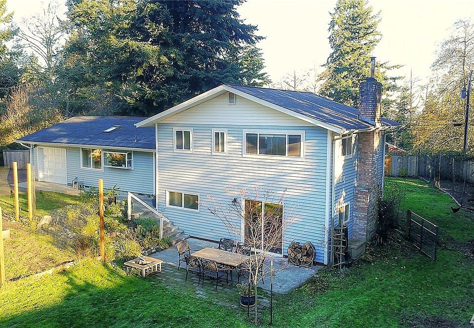 North End Gem! Blocks from the Seattle ferry, this warm and inviting home has 3 bedrooms and 1.5 baths. Three levels with a Rec room, kitchen that opens to living area, 1-car garage converted to additional living space. Two fireplaces - gas and wood. Great corner lot fully fenced with plenty of outdoor space. Chicken coop, deer-fenced garden, greenhouse, woodshed and an awesome tree house. Neighborhood beach access too!