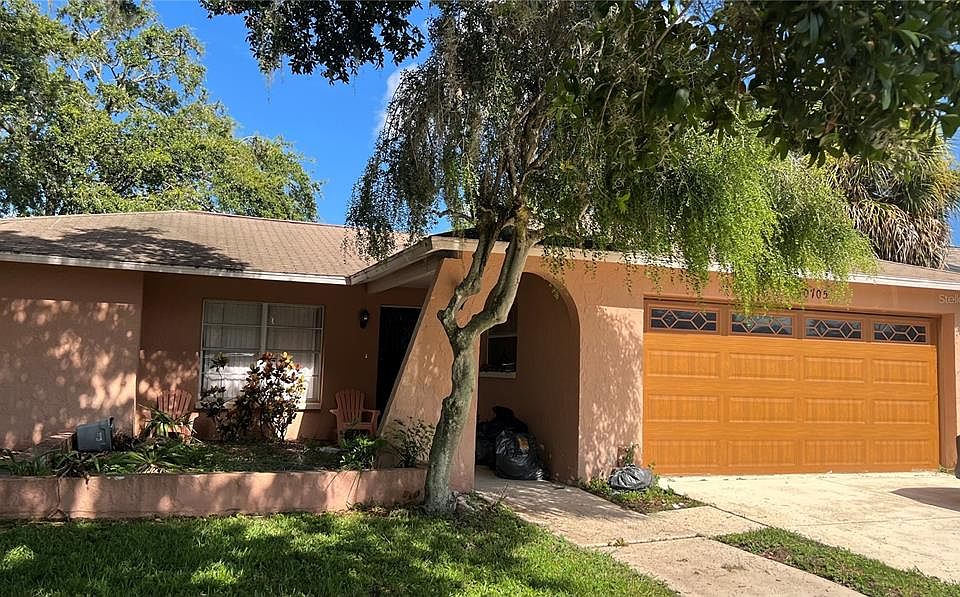 Outstanding investment opportunity in the highly desirable 55+ community of Timber Oaks in Port Richey. This 1979 block construction residence features 3 bedrooms, 2 bathrooms, a split floor plan, 1,944 square feet of living area, and a 460 square foot two-car garage. The home includes a spacious family room, formal living room, and an additional room with a fireplace. The kitchen is equipped with a brand new refrigerator, dishwasher, and range, and luxury vinyl flooring installation has been started. While the property has undergone some updates, it is currently in disrepair and will require significant renovation. The home is best suited for an investor or cash buyer who can see the potential and is prepared to restore it. Roof replacement can be completed prior to closing at the buyer’s request, or left for the buyer to complete after closing. Timber Oaks offers a full suite of amenities including a pool, spa, library, conference room, and card room, providing an exceptional active adult lifestyle. The community is ideally located less than 30 miles from Tampa International Airport, close to the Gulf of Mexico, and situated in a No Flood Zone. With solid block construction, an excellent location, and strong upside potential, this property is priced to sell and represents a rare opportunity for investors.