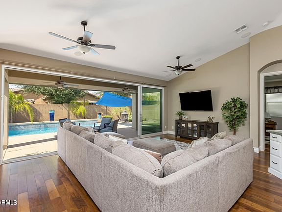 Luxury Eastmark 3 Bedroom 2 Bath with a Den single level home for rent. Walk in and immediately notice the large open floor plan with vaulted ceilings and large multi slider to give you the view of the POOL. Kitchen includes white cabinets, large granite island, cooktop, double wall ovens and tile backsplash. Large primary bedroom with spacious bathroom and walk in closet. 2 other bedrooms and 2nd bath includes double marble vanity. Backyard oasis includes private pool with service included, turf and large shaded patio. Luxury Eastmark 3 Bedroom 2 Bath with a Den single level home for rent. Too many upgrades to list! Walk in and immediately notice the large open floor plan with vaulted ceilings and large multi slider to give you the view of the POOL. Kitchen includes white cabinets, large granite island, cooktop, double wall ovens and tile backsplash. Large master bedroom with spacious master bathroom and walk in closet. 2 other bedrooms and 2nd bath includes double marble vanity. Backyard oasis includes private pool with service included, turf and large shaded patio.