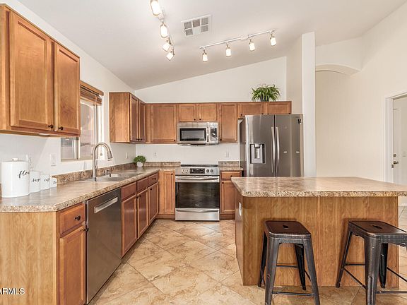 Welcome to your dream home! This immaculate 4-bed, 2-bath beauty boasts a single-level floor plan with vaulted ceilings, creating a spacious and airy ambiance. The freshly painted interior and brand new carpeting in all bedrooms ensures comfort and luxury. Step into the heart of the home - an eat-in kitchen featuring stainless steel appliances, a center island, and a convenient walk-in pantry. With tile flooring in all the right places, this residence effortlessly combines style with practicality. Don't miss the chance to call this place yours!