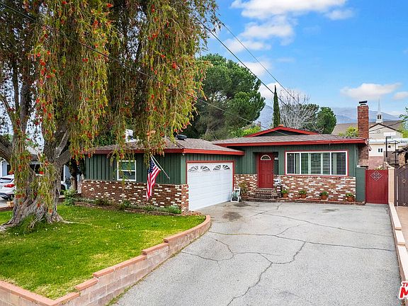 First time on the market in 22 years... This charming Sunland Foothills home features approximately 1,161 square feet of living space. Nestled in a quiet neighborhood, home has a large driveway for several parked cars. As you step through the front door, you will be greeted at entry to the right, a cozy living room with hardwood oak floors and a fireplace with marble hearth and oak mantel. To the left is the open-concept country kitchen and dining area with wainscoting and wall railing which flows seamlessly into the covered lanai patio through the double French doors. The hardwood oak floors extend through the hallway and into the 3 private bedrooms with cedar lined closets. Crown and base molding in living room and bedrooms, including hallway. Full bathroom with shower over tub in the hallway, plus a half a bathroom with sink and toilet in the 3rd bedroom suite. All 3 bedrooms have been recently painted. Recent update of the entire roof, including above garage and above patio. Recently installed brand new water heater; central air and heat; energy efficient double-paned windows throughout; R-30 insulation in the attic; insulated front door; block fenced wall surrounds the private backyard and side yards; hard wired automatic sprinklers in front yard; solar powered automatic sprinklers in backyard. The 2-car garage is currently being used as a workshop with a side door leading to the connected enclosed lanai patio which has a door leading to the house as well as to the backyard. 2-car garage potential for ADU, check with city for permits. The washer and dryer are in the garage with the new water heater. Nearby Foothill Blvd., shopping, dining, freeways, and multiple schools (go on GreatSchools.org).