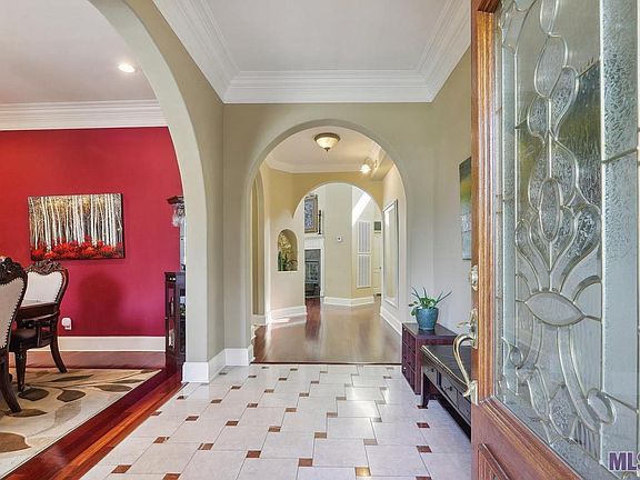 This beautiful home sits at the end of a private street subdivision. I has great curb appeal with tons of parking in the rear. The living room has 22 ft ceilings, a double-sided fireplace, wet bar and French door with views of the inviting Gunite Pool in the backyard. The pool area is wired for surround sound, there is a waterfall and Gazebo, gas hookup for grilling and built-in outdoor sink. The kitchen has a walk-in pantry, stainless steel appliances, 5-burner gas range, granite countertops, a breakfast bar and a breakfast room! The Primary Bedroom Suite is downstairs with views outside, a sitting area, and it#8217;s own private bathroom and two large closets. There is a second bedroom suite downstairs for a child, elderly parents, or just overnight guests. The powder room is situated off the main living area for convenience. Upstairs there are two bedrooms with a jack jill bath setup. There is a very large Bonus Room (currently being used as an Exercise Center), there is an office area with a built-in desk, and a TV or sitting room area. There are Pella crank windows, Generator, security system, wood window blinds, ceiling fans, landscape lighting and irrigation system, plus a triple car garage and then additional parking to boot! Come by to take a tour of this great property!!
