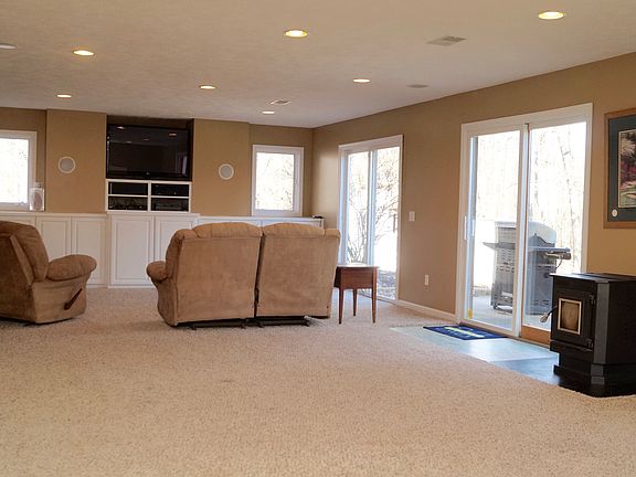 Ada ranch, 5 bedrooms, 3 baths. Lowell Schools. 2.14 acre private wooded lot. Brick and Cedar front and walkout lower level complete this cul-de-sac home. Cathedral ceiling over living room with gas fireplace and 2 skylights. Open floor plan from living to dining with sliders to large deck. Kitchen with semi custom cabinets and a large island combined with snack bar. Main master suite has large walk in closet (attic access) double sink, toilet room and large tub/shower unit. Main has two bedroom s and full bathroom in hallway. Down has laundry room with daylight window, 2 bedrooms, full bath with walk-in shower and large family room with built in speakers, pellet stove, media wall and slider to patio. Garage has hot and cold water and pull down attic storage.