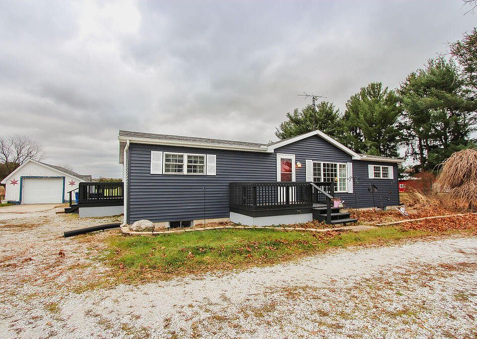 Welcome to your country retreat on 3 beautiful acres. This inviting 3 bedroom, 2.5 bath home featuring high ceilings and a spacious kitchen that's perfect for cooking, entertaining, and gathering. The primary bedroom offers dual closets and a en-suite bath, creating a comfortable owner's haven. Enjoy peaceful views in a serene setting, enhanced by thoughtfully planted trees forming a natural living fence around the property for added privacy and charm. Major updates provide peace of mind, including a new roof and siding completed in 2020. A standout feature is the impressive pole barn, also built in 2020, fully drywalled and designed for entertaining with a large lounge area and bar, plus a covered back porch that's ideal for outdoor relaxing. Additional storage and hobby space are available in the single-car garage with two overhead doors, providing flexible use for parking, a workshop, or equipment. Come take a look! Call today for your private showing.