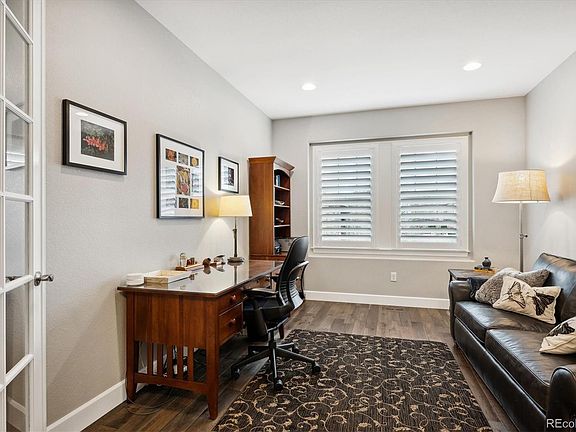 Step into luxury & comfort with this exquisite Shea Ranch home, where every detail exudes quality & elegance. As you pass through the covered entryway, adorned w/ custom steps, you're greeted by a sense of exceptional craftsmanship that permeates every inch of this residence. The heart of the home is the expansive great room, featuring a charming gas fireplace enveloped by a custom floor-to-ceiling stacked stone surround. Whether it's a quiet evening in or lively gatherings with loved ones, this space sets the perfect ambiance for any occasion. Entertain in style in the formal dining room or take the festivities outdoors to the extended covered deck. The gourmet kitchen is a chef's delight, boasting top-of-the-line appliances, elegant white shaker cabinets, & an expanded breakfast nook. The center island offers both additional seating & ample space for culinary endeavors, while the generously sized walk-in pantry, upgraded w/ California Closet features, ensures storage is never an issue. Retreat to the luxurious primary bedroom suite, featuring a spa-like 5-piece bath w/ a soaking tub & walk-in shower, along with a spacious closet fitted w/ custom California Closet built-ins. Two additional bedrooms provide ample space for guests or family members. The main floor study offers a quiet workspace, while the main level powder room adds convenience for guests. Descend to the finished walk-out basement, where you'll find an additional family room, 3rd bedroom, & a full bath, perfect for accommodating guests or creating a versatile living space. The 3-car finished & insulated garage is a car enthusiast's dream, complete with built-in Elfaa shelving for optimal storage solutions. Additional features of this exceptional home include engineered hardwood floors, plantation shutters, & a spacious laundry room with cabinets & a utility sink. The property is thoughtfully xeriscaped for low maintenance, creating the perfect setting for outdoor gatherings and relaxation.