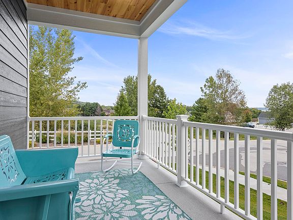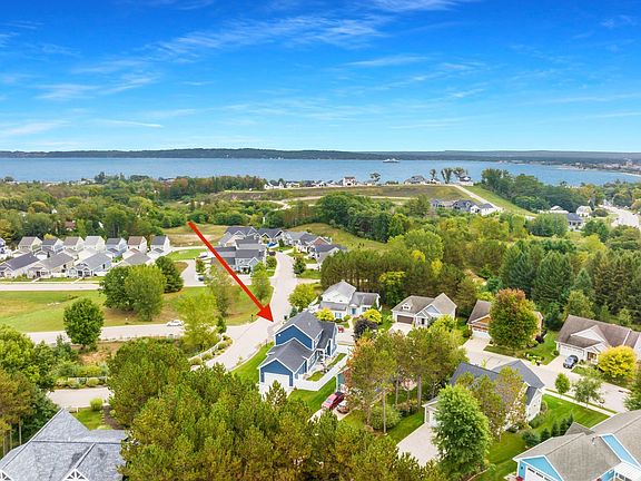 Nearly brand new 5 bedroom /3.5 bathroom home on corner homesite in highly desirable private community of Morgan Farms. This home boasts a large open concept main floor living area that walks out to a private fenced in yard. Fully vaulted great room ceiling allows for expasive windows and beautiful natural light. The main floor primary suite has an attached 5 peice bath with a heated and jetted soaking tub and walk in shower. The two spacious upstairs bedrooms and full bath enjoy a bonus loft space featuring a view of the Grand Traverse Bay. Downstairs the finished lower level adds a large living space, 2 additional bedrooms and full bath. The kitchen offers a large reach in pantry, vented range hood above the GE Cafe 6 burner dual fuel range, and spacious center island. This nearly 3,600 square foot home is walkable to the the TART trail, many restaurants, parks and beaches, and is located within the Traverse City Limits, making it true in town living!