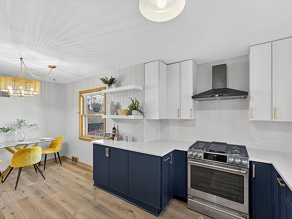 Lovely, updated brick Mid-Century Modern style Cape Cod in popular Park Ridge subdivision! Beautiful new LVP flooring in spacious living room. Fabulous new kitchen! Quartz countertops, tasteful new soft close custom cabinets, trend setting big tile backsplash, SS appliances. Rich HWFs in 1st floor bedrooms while Primary BR has new carpeting, built-in drawers, bookcases & desk for your computer needs. Cedar closet & lots of storage throughout. Both bathrooms are modernly refreshed with new vanity sinks & toilets. New LVP flooring in the rec room with a retro bar. Extra wide 2.5 car GA + walk up storage + a carport! Wonderful yard. Great walkable location to Currie Park, Men. River Pkwy, yet E Z freeway access, close to dining, stopping. All this and nestled in an awesome location!
