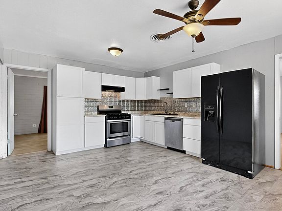 4-Bedroom 2 bath Fixer-Upper with Great Bones & Tons of PotentialBring your vision and make this solid, block-built home your own! This property offers potential with mostly cosmetic updates needed--perfect for anyone ready to add their personal touch. Inside, you'll find a functional layout with no carpet, ceiling fans, and a gas stove. The kitchen already features updated cabinets and countertops. Bathrooms have newer vanities, toilets, and shower surrounds, and both the furnace and water heater have been updated over the years.Outside, enjoy a covered back porch, a few mature fruit trees, and backyard access from the alley. There's a 1-car garage plus a carport for extra parking. The home also has a durable metal roof. Appliances including the refrigerator, washer