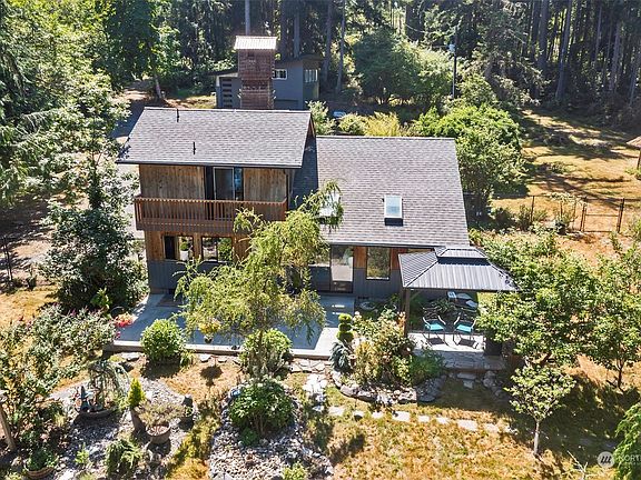 An open and sunny Puget Sound waterfront property is beckoning you! This is a truly rare low/med bank w/165' frontage and 2.14 ac including tidelands. The unique multi-level home has been very tastefully remodeled. Newer modern kitchen boasts elegant cherry cabinetry &granite slab countertops. Both artistically-designed baths have beautiful floor-to-ceiling slate & tile. AMAZING 1350 SF garage/shop new in 2021. Extra-tall bay for boat storage, insulated, 230 volt throughout. The 450 sf upstairs room is perfect for an exercise room, music room, or office. Hard-wired Generac. A 180 SF 2-room outbuilding serves as additional storage &office. Enjoy many mature gardens w/a variety of fruit trees. The old historic well house tower will charm you!