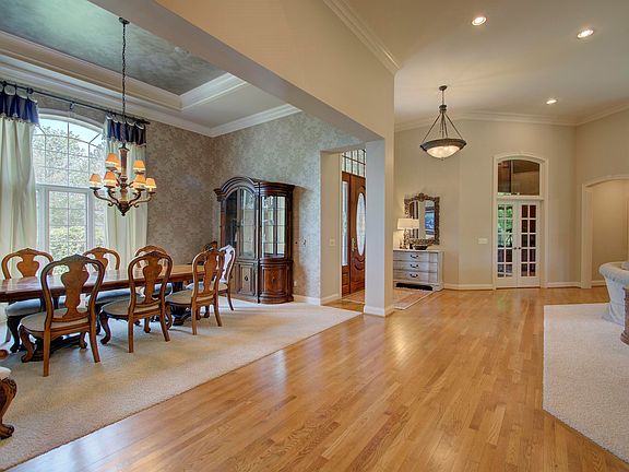Situated on the BEST golf course lot in the Triple Crown Community, this stunning Studer design, 2-story brick house offers 3 finished levels of approximately 8500 sq ft. Beautifully appointed design in every room. 5 beds, 4.5 baths, 3 car garage, 10865 gross (Realist) sq ft, 3 fireplaces, gourmet and large eat-in kitchen, pot filler, 2 beverage drawers, extensive crown molding, soaring ceilings, mud room, butler pantry, 2 wet bars, central vac, irrigation system, 2 home offices, roof(10/2020), large covered patio with tile floors, stamped concrete patios front and back of house, exercise room, lower level with 9 ft ceilings, 2 lower level walkout access, 2nd floor work area, Jack & Jill bathrooms, surround sound throughout 2 levels and patio, exterior backyard water feature, laundry chute, full bath rough in, possible 6th bedroom, space for swimming pool and large storage areas with many possibilities. Vanity tops in Jack & Jill Bathroom and upstairs workspace ordered. Samples available.
