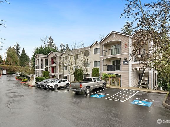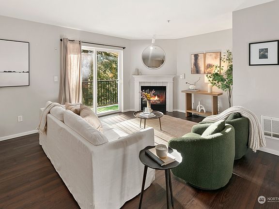 An array of incredible restaurants, shops & UW Bothell are just steps from your front door in this 2 bed/2 bath Downtown Bothell home! With a high walk score & transit access, a car is optional but reserved parking for 3 cars (including your own PRIVATE GARAGE) is a fabulous perk. Engineered hardwoods stretch through the open concept living room/dining room & kitchen, opening to a covered balcony overlooking a lush tapestry of greenery. A spacious primary suite boasts a walk-in closet, en-suite with full bath & territorial views. Large 2nd bedroom is the perfect guest suite or home office. Pets are welcomed & will enjoy the beautifully landscaped grounds. No rental cap, strong HOA & meticulously maintained property. Welcome Home!