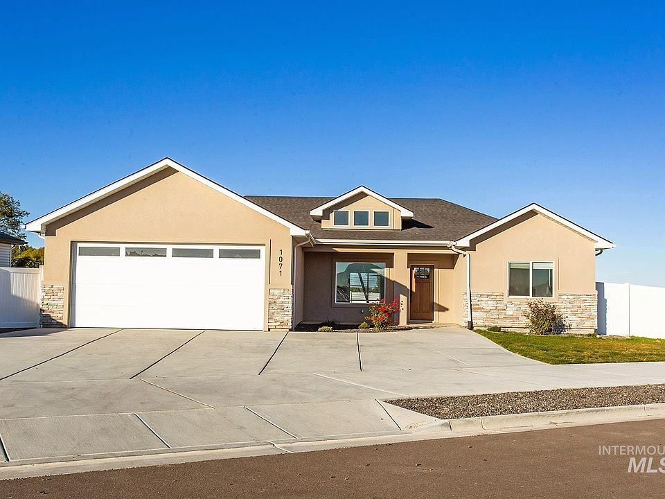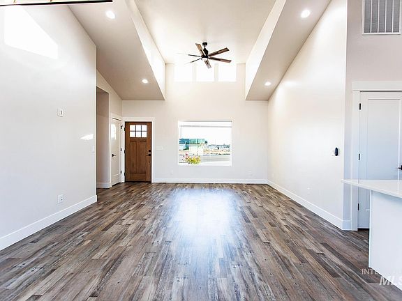 Great 4 bedroom 2 bath home with large 2 car garage. Located on the NW side of Twin Falls close to medical, shopping and services. Kitchen includes all appliances including refrigerator, gas range, dishwasher and microwave. Kitchen features quartz counters, a center island, breakfast bar, and pantry. The kitchen, living room and dining are all open to each other with vaulted ceilings. This split bedroom plan has a master bedroom with coffered ceiling, walk-in closet, plus an oversized tub/shower. There is a large fenced backyard. with an area north of the home that would be ideal for a play area, garden, RV parking etc.