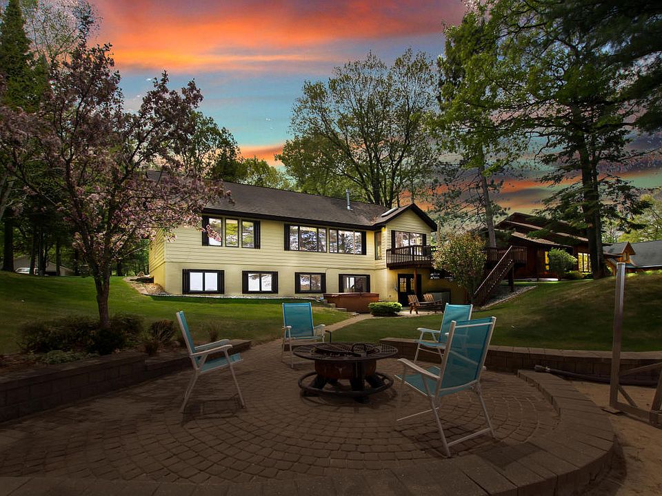 Gorgeous East Twin Lake waterfront home! Home features 6 bedrooms, 3 bathrooms, full walkout basement, open floor plan and more! Inside the home offers a spacious living room with real stone fireplace with insert, master suite and sun room all overlooking the lake. The lower level has a craft/game room, family room, breakfast nook, storage rooms and walkout to the patio with hot tub. Property also features a 40x32 heated garage and 13.5 acres shared between 4 owners that includes various trails and ponds. If you're looking for a peaceful getaway or year round home, this is it!