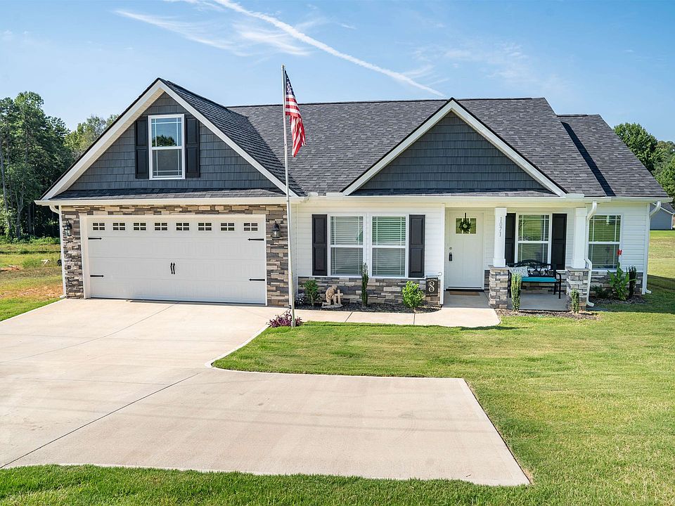 This home is not only just a few months old but it is still like the day it was finished. The open floor plan with the rock fireplace makes a wonderful place to relax or entertain. The sunroom is just off the kitchen making it even better for entertaining. There is a covered porch that is just divine to sit on and enjoy watching the birds and deer. Attached is a deck for table and grill area. This is a split bedroom floorplan with the owners suite on one side of the home and 2bedrooms on the other side. Large pantry in the kitchen, island and granite countertops. Laundry room is large enough for freezer and has utility sink. Lot is.66 acres, large enough for pool in the back. This home shows very well, book your appt today.