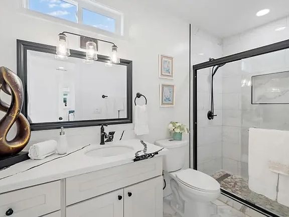 Enjoy a cozy living area with a fireplace and refinished hardwood flooring that adds warmth and elegance throughout. The home has been thoughtfully updated with a fully remodeled kitchen and bathrooms, recessed lighting, fresh interior and exterior paint, new windows, and a converted laundry room for added functionality.