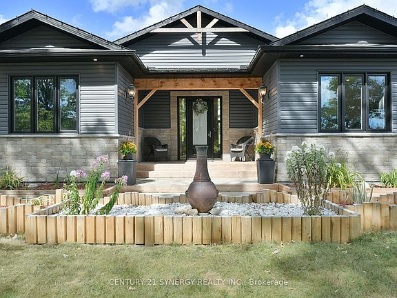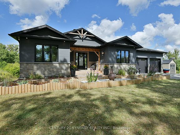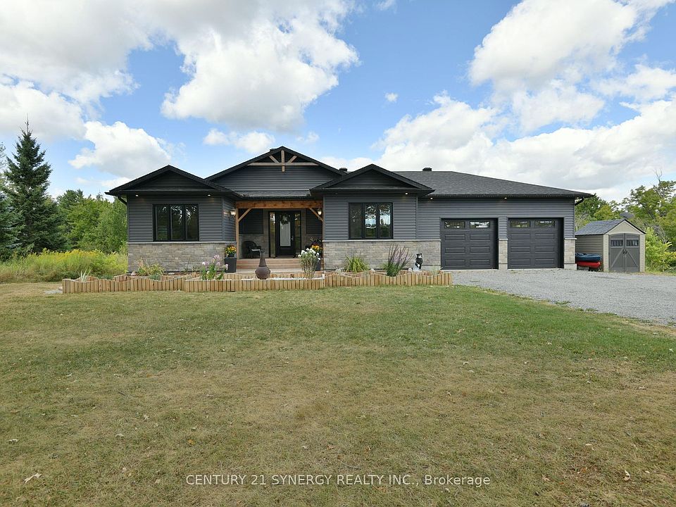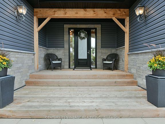 This luxurious and charming custom-built 4-bedroom, 3-bath home (2020) offers the perfect blend of elegance and comfort. A beautifully manicured front walkway with large paver-style tiles and unique flower beds leads to wooden stairs, creating a warm and welcoming first impression. Inside, the main level features an open-concept kitchen, dining, and living area, highlighted by vaulted ceilings with striking faux wooden beams, soaring 8 ft doors, and freshly painted interiors. The primary suite includes a 5-piece ensuite with radiant in-floor heating and a walk-in closet for a true retreat. Designed with entertaining in mind, the home boasts a spacious elevated deck that feels like you're perched above it all, offering a stunning vantage point to enjoy morning coffee or evening sunsets. A designated section is wired and ready for a hot tub, adding even more potential for relaxation. The partially finished walk-out basement includes a family room with a wet bar, a dedicated office, and a versatile unfinished bonus room currently used as a gym. The family room is also plumbed for a wood stove, and with its layout, offers excellent potential for multigenerational living. Radiant in-floor heating extends to the basement bathroom, ensuring year-round comfort. Radiant in-floor heating extends to the basement bathroom, ensuring year-round comfort. Set on a rustic and private lot framed by majestic oak trees, the property offers a natural retreat with a slightly wild, charm perfect for those who appreciate both privacy and the beauty of nature. All this while being just 13 minutes to Arnprior, 36 minutes to Kanata, and only 1 minute from a nearby boat launch. Close to all amenities, as well as golf, skiing, hiking, and shopping, this home combines modern design, thoughtful details, and an exceptional setting in the highly desirable Flat Rapids Estates on Mill Ridge.