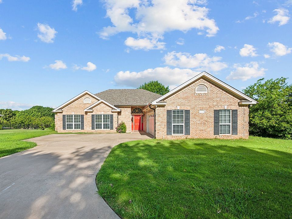 This lovely home is welcoming and feels like home. Through the front door, you will find a large entryway that opens into the living room-dining room combination. This space is large enough for a formal dining table and still allows plenty of room for the living area. To the right of the entry is the well-laid-out kitchen with granite countertops and cabinets for storage and a walk-in pantry. The kitchen is open to the den with a fireplace, access to the backyard, and a bay window for a small breakfast table if desired. To the left of the entry is the hallway that leads to two guest bedrooms and the guest bath. At the end of the hall is the large, oversized primary bedroom with a walk-in closet and a large primary bath with a jetted tub and separate shower. This home has a large lot for plenty of space to enjoy any outdoor activities. There is a large utility room and a half bath off the kitchen.