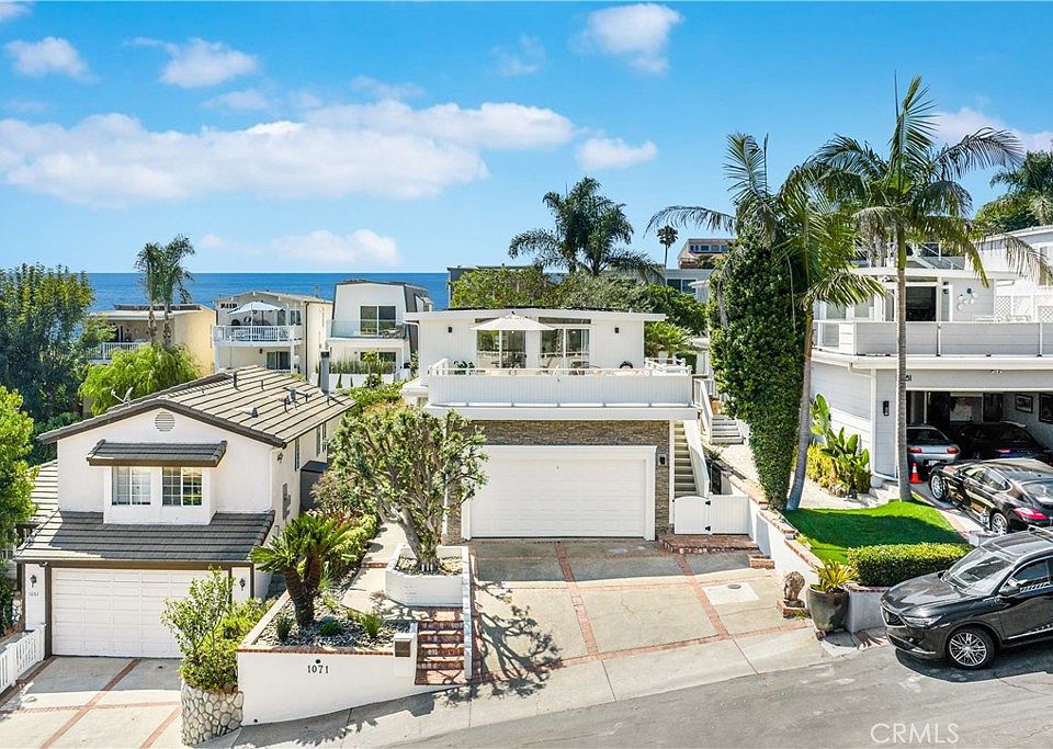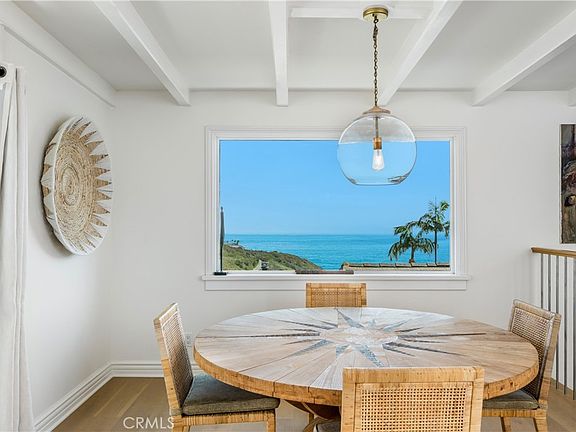 This charming, highly upgraded home offers stunning ocean views and is located moments from downtown Laguna Beach. The open floor plan on the upper level includes an expansive living section, a dedicated dining area, and a recently remodeled kitchen - all connected to the attached deck of impressive proportions via two sets of sliding doors. A perfect backdrop for enjoying the coastal lifestyle, with the panoramic canyon, city, and Pacific vistas visible through the oversized windows and from the adjacent balcony which doubles as an outdoor living area. The kitchen is an ideal gathering place and features a sleek waterfall edge island, new cabinetry, and elegant finishes. A bathroom completes this level. On the ground floor, three bedrooms share a bath and the spacious primary retreat connects to the home’s private, fenced in yard. New hardwood flooring throughout the main areas adds to the property’s refined aesthetic and a two car garage provides further storage. The coveted Arch Beach Heights neighborhood is known for its proximity to Moulton Meadows Park and offers easy access to Downtown, providing a perfect blend of comfort and convenience.