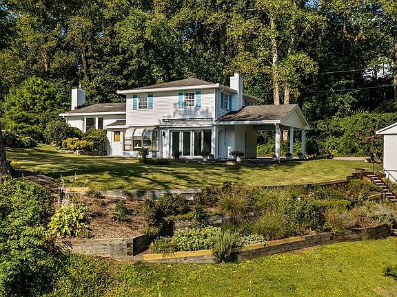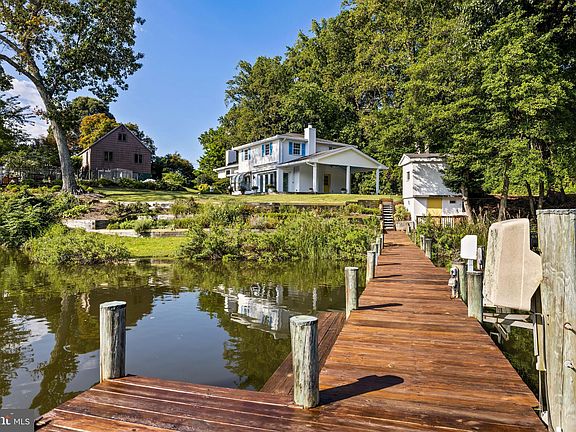 Park Creek has an entrance that allows for some larger yachts..mean low is 5 feet at the entrance! There are several Large Yachts on near by piers, a 43ft Eastbay for instance! Sought after peninsula location on the "North Shore" of the Magothy River with easy access to the main channel. Private protected cove with your own dock that has 5 feet of water and 2 power lifts, 1 for a jet ski and a 10,000lb lift. Inside, this cute cottage has wood burning fireplaces, a bright living room with hardwood floors and a bay window with a panoramic view of Park Creek. There is a large brick paver patio where you can relax as you watch ospreys and herons. Beautifully landscaped! 3 large bedrooms upstairs allow for great entertaining on the lower level indoors and out.