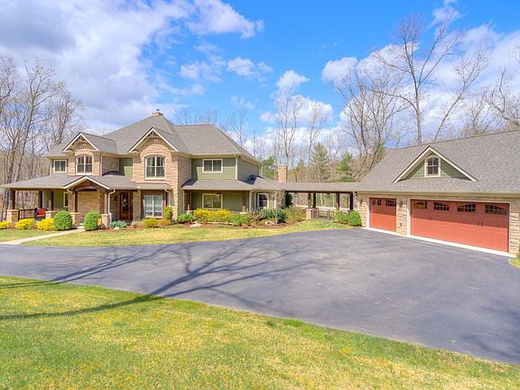 One-of-a-kind custom-built home located in Coal Bank Ridge is what dreams are made of. Grand entrance with custom arch wooden doors with wavy glass into the open foyer open to the soaring living room. The living room boasts vaulted ceilings with custom beams, natural light, chandelier and wood fireplace with stone accent. The kitchen has custom cabinetry, pantry, butcher block in the center island, farmhouse sink, and book storage with a breakfast area overlooking back patio with more formal dining room around the corner. The master is on the main with a remodeled master bathroom that is exquisite with heated flooring. The laundry and mud room are located on the main with a folding area and storage. The upstairs boasts a rec area, three bedrooms, and a full bathroom. Basement has a family rec room with home theater, full bar with seating, wine room, and half bathroom. Phenomenal patio space with full outdoor kitchen, seating, hot tub, and fenced yard.