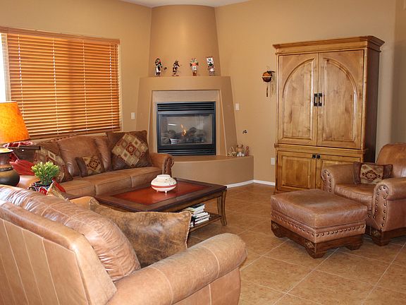 Southwest living at it's best. Beautiful mountain view and desert behind. Elegantly SW style inside. Court yard for socializing with neighbors. Private backyard w/easy care landscaping. Guest room with sitting area/Den. Hobby room or office with built-in desk & storage. Great room with Kiva gas fireplace. Executive height vanities in all baths. Tile in living areas and carpet in bedrooms. Professionally landscaped w/perennials, tombstone roses, Mexican primrose, & desert petunias. San Miguel neighborhood with Las Campanas Center close by for exercise & activities.