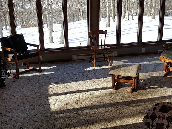 Ultimate location less than a mile west of Amery on a Cul De Sac with park- like view. 3.44 acres of land outside the city limits bordering the Stower 7 lakes walking trail and overlooking a beautiful pond. House is a 3 bed 1.75 bath walkout . Many updates!!