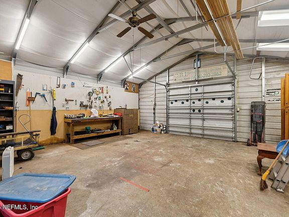 Rare find in sought-after Mandarin area! Concrete block construction, pool home on 1-acre lot with 4 bedrooms, 2.5 baths, which includes a private in-law suite, sunroom, AND a separate 1,050 sqft amazing workshop/garage/man cave out back. The home features a screened front porch, foyer, large family room with fireplace, flex room/office, and a separate dining area. Custom, updated, and fully equipped kitchen (dishwasher & refrigerator, both 1 year old), smooth-top range, microwave, glass cabinetry, pantry, and breakfast bar. A 25' x12' ''all-weather'' room with French doors to pool & backyard. The primary en-suite features a walk-in shower, Bluetooth lighting, and a wall-to-wall closet. Extras: chicken coop, citrus trees, double gate, AC (2014), prewired for alarm, laundry area, RV pad w/ power & water. Walk to the elementary & middle school. Perfect for those seeking acreage, a pool, and a workshop with city conveniences. The owner says that you can have a horse!