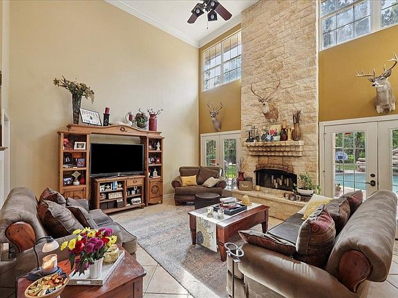 Welcome to your private retreat! Nestled on 8 secluded acres, this stunning 5-bedroom, 3.5-bath home offers the perfect blend of rustic charm & modern comfort. With a stone exterior, this property boasts timeless curb appeal & durability. Step inside to discover an open island kitchen designed for functionality & style, complete with ample cabinetry & workspace. The home features a formal dining room, a private study, & a spacious living area with a soaring ceiling that enhances the open, airy feel. Enjoy Texas summers in your refreshing Gunite pool, or unwind on the back patio while taking in peaceful views of your expansive acreage. The property includes a dedicated workshop—ideal for hobbies, storage, or home-based projects. Recent updates include a new roof & HVAC system, offering peace of mind & energy efficiency. Whether you’re looking for room to roam, a place to garden, or space for animals, this property has it all. Don’t miss the opportunity to own this one-of-a-kind estate!