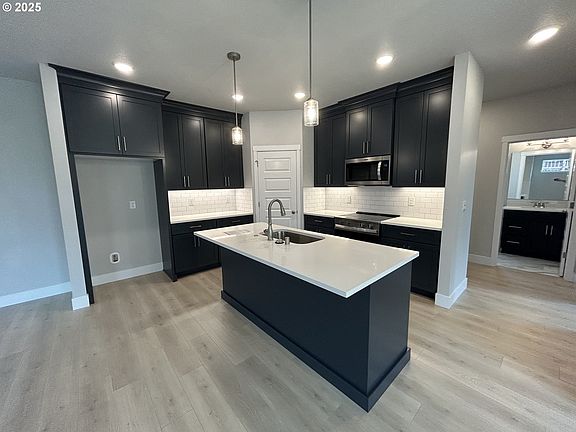 This 4 bedroom 3 bath home has all the extras! A three car garage, a den, dining nook and large kitchen island. Primary bedroom features large bathroom with dual vanities and spacious walk in closet. 9 ft ceilings,slab granite counters, stainless appliances,tile,luxury vinyl wood floors,covered patio, landscaping,nicely appointed trim package,fireplaces & more.