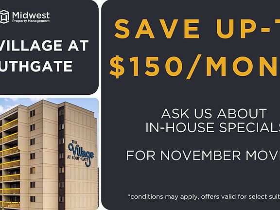 - Special offer! Save Up To $150/Month - Save Up to $150/Month Move in by December 1. Ask about our in-house specials. *Conditions may apply. Offers valid for select suites only. Explore on your own schedule with our free self-guided tours. Simply select a unit, book a time, and tour at your pace. A valid ID is required to reserve.