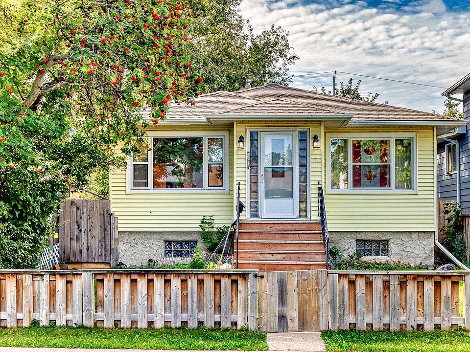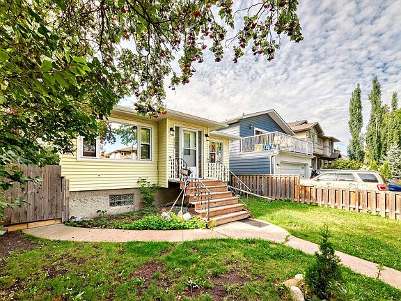 Charming Queen Alexandra Bungalow with separate entrance and in law suite! Welcome to this well-kept 900 sq. ft. bungalow in the desirable community of Queen Alexandra features an oversized single car garage and a west facing back yard. Offering updated windows and roof, 3 bedrooms and 2 full bathrooms, this home is ideal for families, first-time buyers, or investors. The main floor features a bright living area, functional kitchen, dining space, 2 bedrooms, laundry, and a full bathroom. A separate side entrance leads to the fully finished basement, complete with a second kitchen, dining and living areas, a 3rd bedroom, 2nd laundry, and another full bathroom. Situated on a mature lot just minutes from the University of Alberta, Whyte Avenue, schools, shopping, and downtown. this property combines comfort, flexibility, and excellent location.