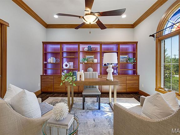 Where luxury meets Lindbergh Schools—this 4 bed, 7 bath estate offers over 6,200 sq ft of refined living. Step inside to immaculate hardwood floors and a dramatic 2-story foyer overlooking the private backyard through expansive picture windows. Just off the entry, a dedicated office with custom built-ins offers a quiet place to work. The main floor features a luxurious primary suite with a gas fireplace, sitting area, jetted tub, and custom walk-in closet. A chef’s dream kitchen boasts a Viking range, double ovens, wine fridge, drink fridge, ice maker, instant hot water, and a custom breakfast bar. Entertain in the hearth or living rooms—both with fireplaces—or host guests in the formal dining room. Upstairs includes three en-suite bedrooms and a loft with retractable skylights, electric WiFi blinds/windows, and a retractable TV. The finished lower level offers a full gym with low-EMF sauna, custom wet bar, full bath, entertainment space, and secure vault. Enjoy a level 3 architectural roof (2021) with all copper replaced, tuckpointed chimneys, and new gutters. Additional highlights: whole-home ethernet, 4-car garage w/ HVAC, Main floor custom remote controlled blinds, Bullfrog hot tub, SunSetter patio furniture, Nest thermostat/doorbell, 2 whole-home gas generators, custom mailbox, and an adjustable basketball hoop. More photos are coming soon! Showings begin at 5:30pm on 5/27/25. Don't miss your chance to call this space your new home!