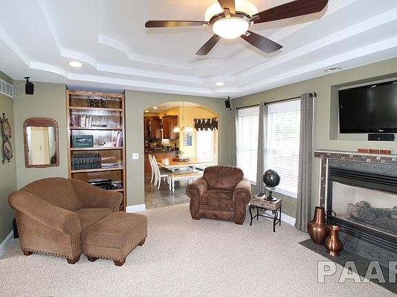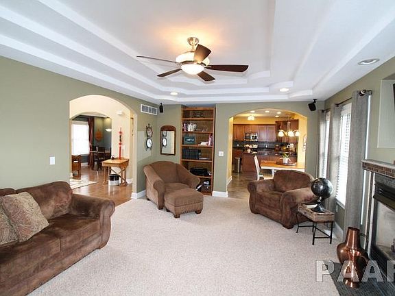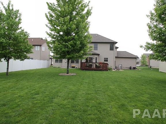 Custom features are found throughout this beautiful home located on a 1/3 acre lot in Trail View Estates! Main floor features a stunning great room with arched doorways, tray ceiling with recessed lighting, and gas fireplace. Den/office with vaulted ceiling. Kitchen with stainless steel appliances, tiled backsplash, granite tops, breakfast bar, large pantry, and a sliding door that leads to the large deck-great for entertaining! Master suite with a huge walk-in closet, whirlpool tub, and a separate shower. Finished lower level with 5th BR, 4th full bath, and more! Close to Rock Island Trail!