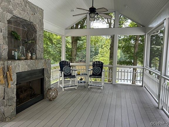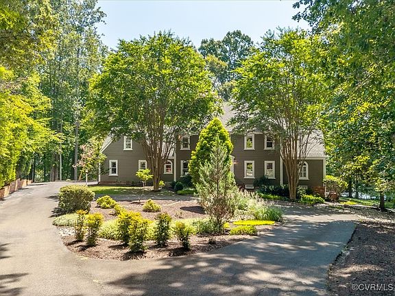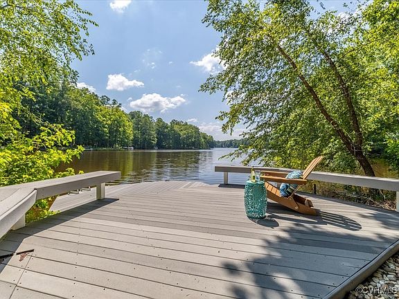 Prime waterfront property with a stunning classic-styled home that has been beautifully maintained from bow to stern! The first-floor primary suite features two walk-in closets, wood floors, a bay window, and a luxurious primary bath that includes an oversized tile shower and a towel warmer. The foyer displays a stunning Waterford Crystal Chandelier. Enjoy the relaxing waterfront views from the family room, kitchen, sunroom, screen porch, and 2025 deck, as well as the primary bedroom's bay window, the bedroom/office on level two, and the bonus room. Discover the custom wood cathedral ceiling in the family room, and beautiful trim work throughout. Sparkling wood floors throughout the formal rooms, family room, bedrooms, hallways, and staircases. Large closets throughout, walk-in storage, and a spacious walk-up attic storage area. The kitchen features a 5-burner gas stove, an oversized island, quartz countertops, a pantry, and a utility closet. The massive screen porch boasts ceiling fans, a gas fireplace, maintenance-free flooring, and beautiful waterfront views. There is a maintenance-free deck and a maintenance-free dock for sipping coffee, an afternoon cocktail, or mooring your boat. The large outdoor attached storage room is ideal for a garden room or storing your mower and lawn equipment. Special features include: pocket doors, a whole-house generator, two 50-gallon gas water heaters, a 50-year grand manor roof, gutters, and an ADT house alarm. The second floor features a Jack-and-Jill bathroom. The property is located 4 miles from Pocahontas State Park and 10 miles from restaurants and shopping. Enjoy the lifestyle that comes with this serene retreat, featuring ultimate indoor and outdoor living.